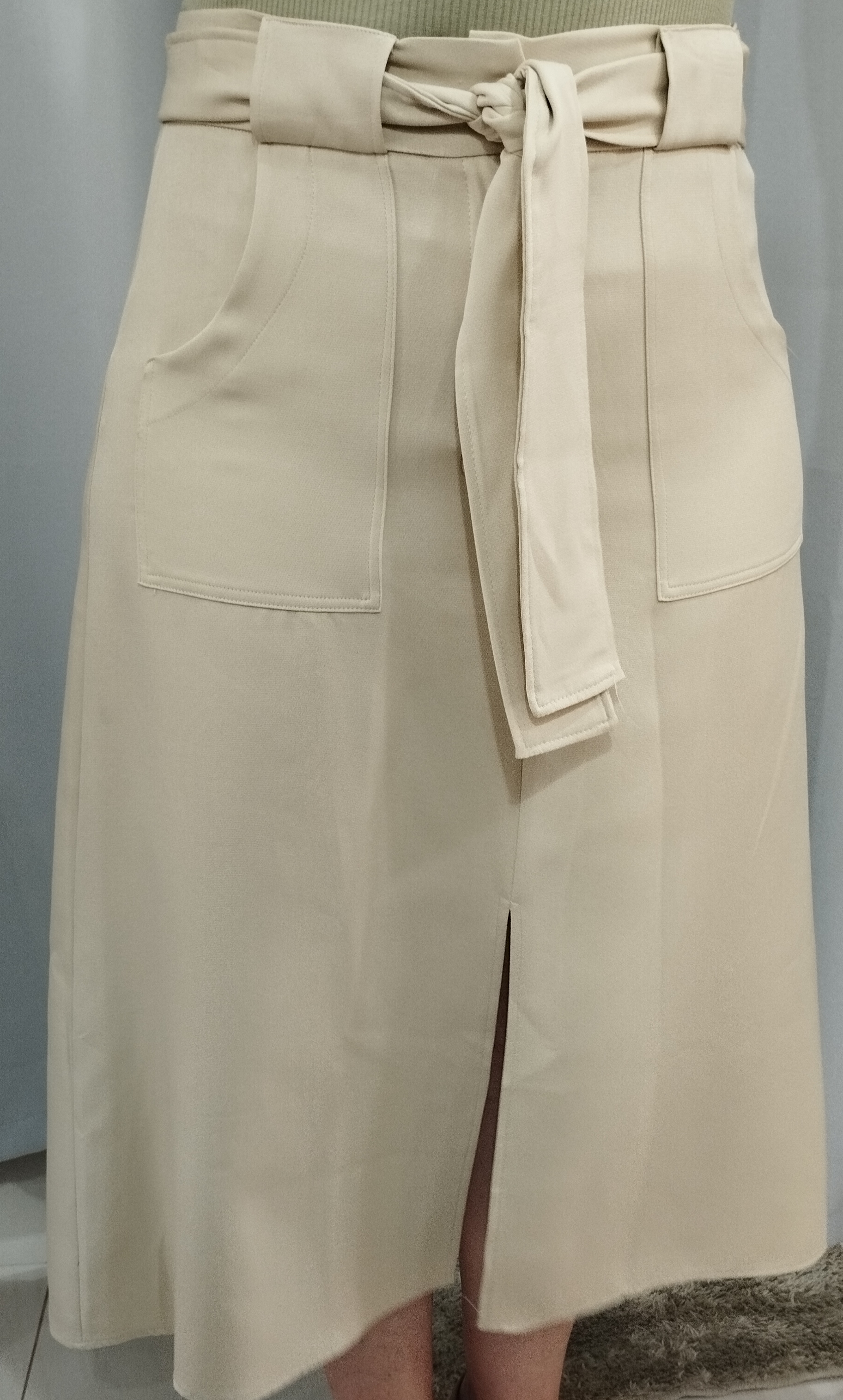 Saia confeccionada em tecido de alta qualidade, com caimento impecável que valoriza a silhueta de forma elegante e confortável. O modelo conta com cinto do mesmo tecido, que marca a cintura e adiciona um toque moderno ao visual. Possui bolsos funcionais, ideais para unir praticidade e estilo no dia a dia, além de fenda frontal que traz leveza, mobilidade e um charme extra à peça. Versátil, é perfeita para compor looks que vão do casual ao sofisticado, dependendo apenas dos acessórios escolhidos. Destaques da peça: Tecido estruturado e confortável Cinto ajustável incluso Bolsos funcionais Fenda frontal elegante Modelagem que valoriza o corpo