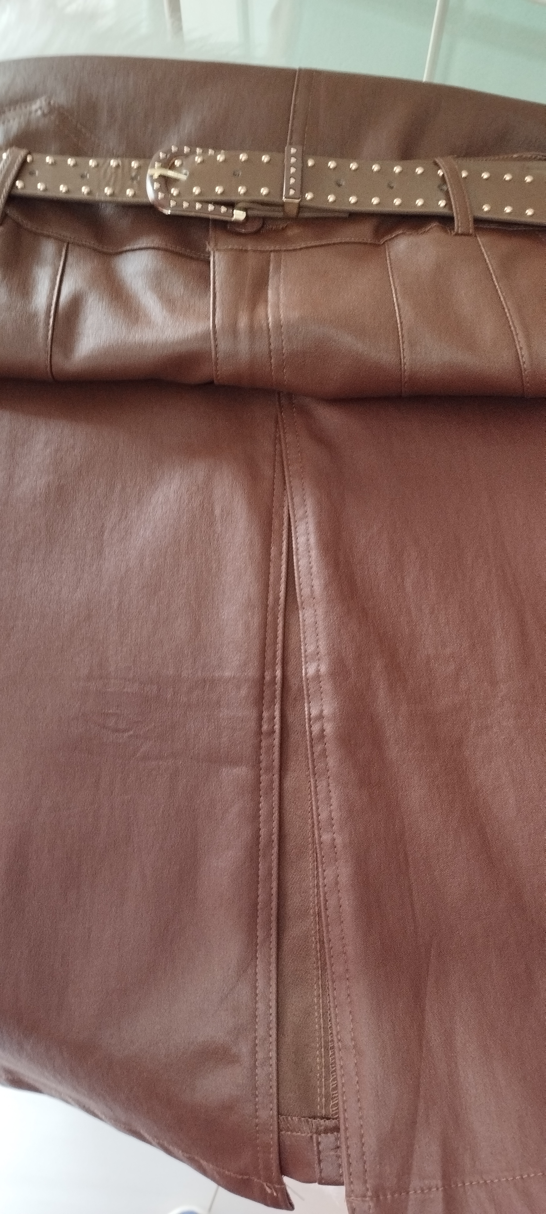 Saia midi confeccionada em couro ecológico, com acabamento sofisticado e toque macio. O modelo possui cintura alta com cinto do mesmo material, destacando delicadamente a silhueta. Apresenta recortes frontais elegantes e fenda frontal, que traz movimento e modernidade à peça.