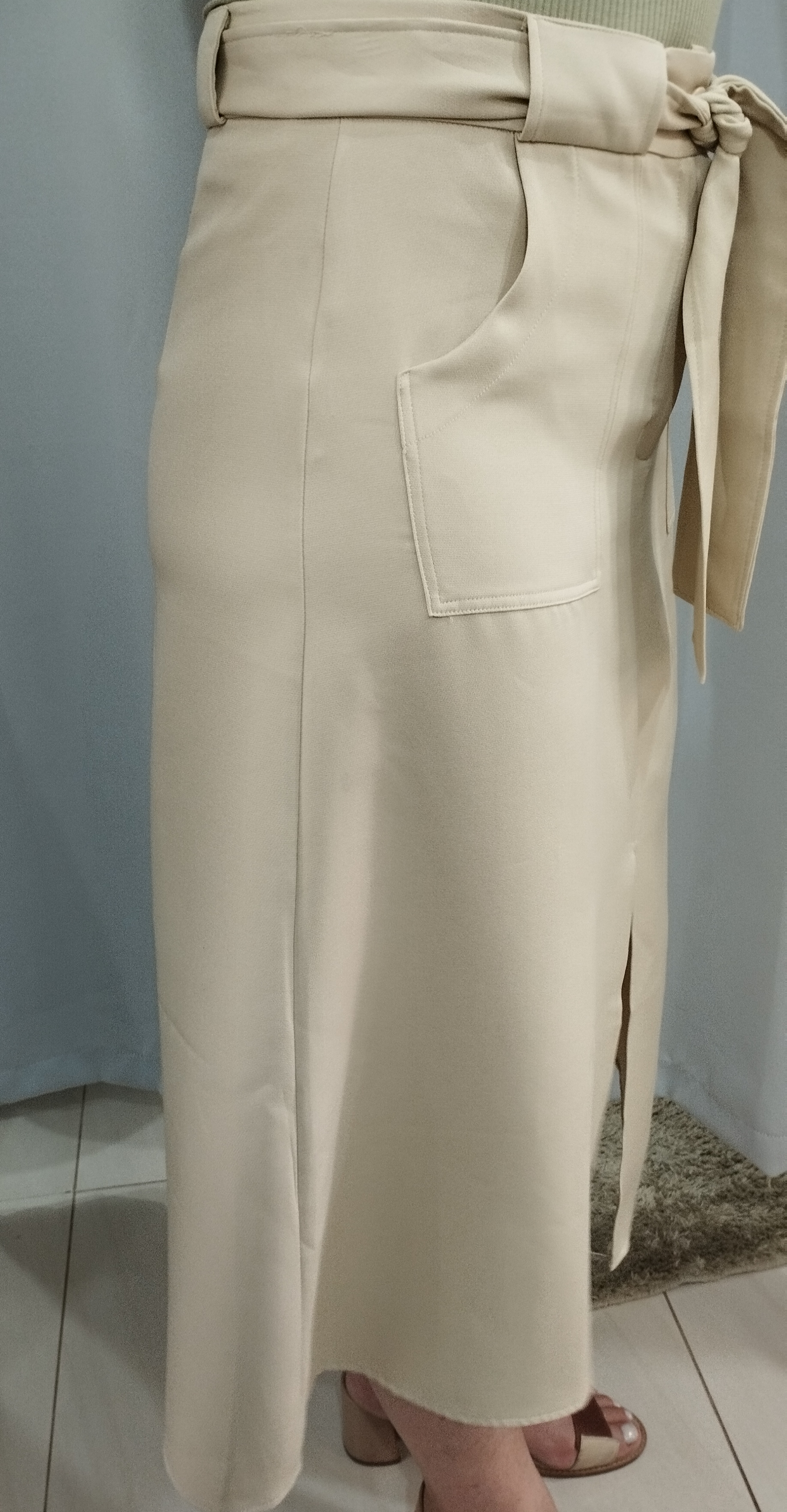 Saia confeccionada em tecido de alta qualidade, com caimento impecável que valoriza a silhueta de forma elegante e confortável. O modelo conta com cinto do mesmo tecido, que marca a cintura e adiciona um toque moderno ao visual. Possui bolsos funcionais, ideais para unir praticidade e estilo no dia a dia, além de fenda frontal que traz leveza, mobilidade e um charme extra à peça. Versátil, é perfeita para compor looks que vão do casual ao sofisticado, dependendo apenas dos acessórios escolhidos. Destaques da peça: Tecido estruturado e confortável Cinto ajustável incluso Bolsos funcionais Fenda frontal elegante Modelagem que valoriza o corpo